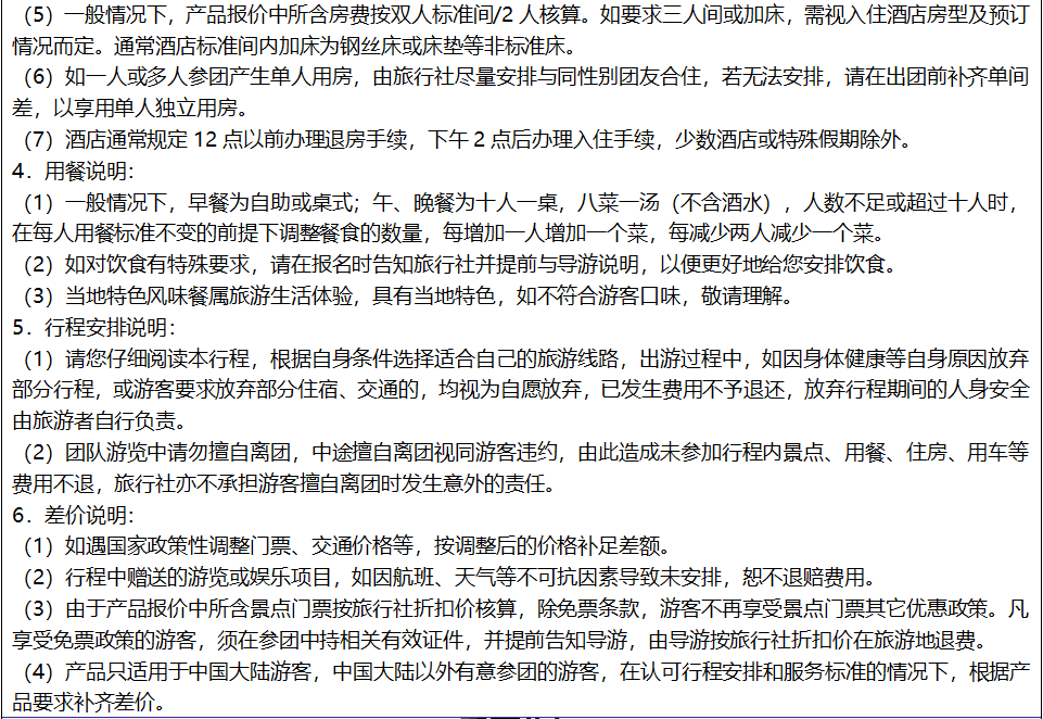 整,敬請(qǐng)諒解!如途中遇到天氣原因封路為不影響正常行程選擇動(dòng)車/高鐵,則動(dòng)車票由客人自理,旅行社負(fù)責(zé)協(xié)助調(diào)車保證行程繼續(xù)行走。