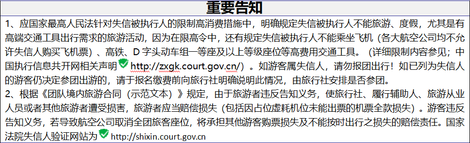 行程中圖片僅供參考,以當(dāng)?shù)貙?shí)景為準(zhǔn)!行程中所有贈(zèng)送項(xiàng)目,客人自愿取消不做任何退費(fèi),不做退換景點(diǎn),多謝配合◎
