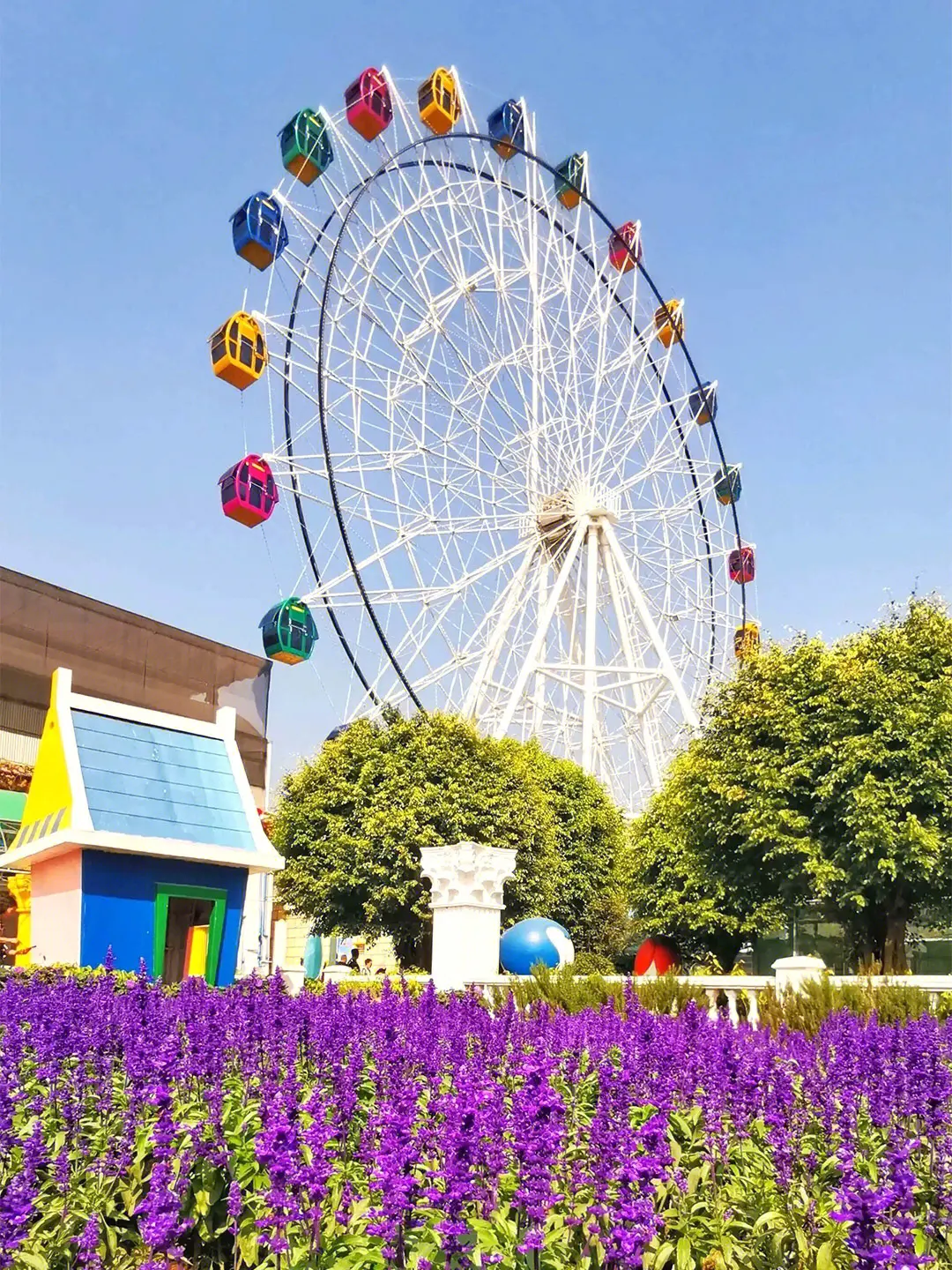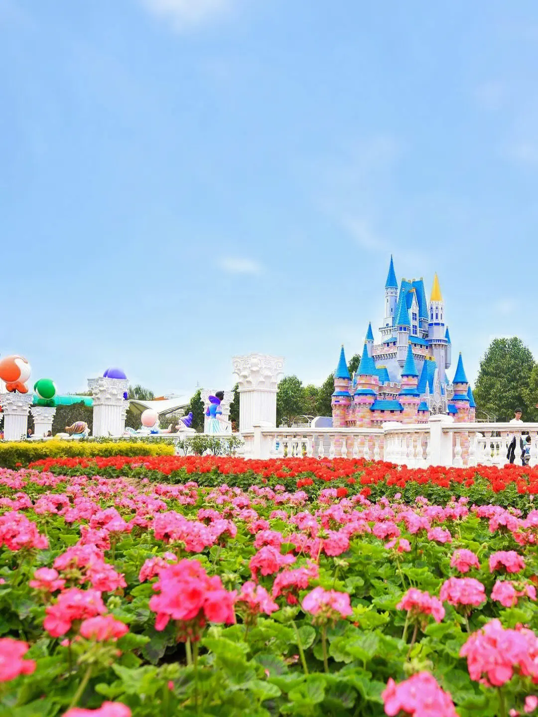 三座粉、藍(lán)相間的巨型迪斯尼風(fēng)格門樓,一片橙色的仙女花在陽光恬靜地流敞著。七個(gè)巨型的氣球“串”綻放繽紛色彩,邊上還圍著精美的花柱。香格里拉,正如其名,有著一種永恒、和平、寧靜的 “世外桃源”。