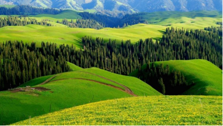 前往禾木風景區(已含門票及區間車),禾木河自東北向西南貫穿其間,將草原分割為兩半,山地陽坡森林茂密,蒼翠欲滴,馬鹿、旱獺、雪雞棲息其間;而陰坡綠草滿坡,繁花似錦,芳香四溢,蜜蜂在采花釀蜜,牛羊滿山遍野覓食撒歡,一派迷人的廣袤草原景色。最美的風景在路上,而前往禾木的這條禾木公路便是這句話最好的證明,千萬不要錯過這一路的景色,保證安全情況下司機可以停下車來讓您拍照留影,讓您好好的欣賞這景色。
